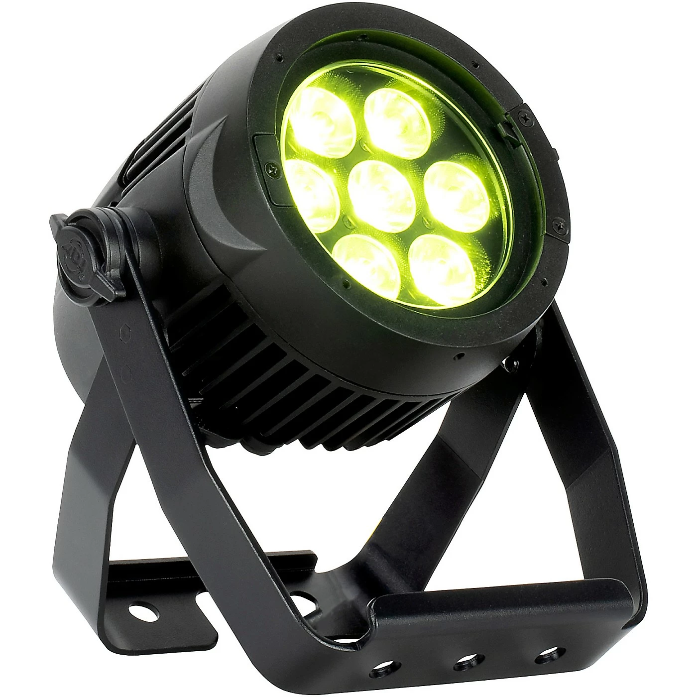 The ADJ Encore LP7IP is a versatile IP65 outdoor rated par with 7 x 20-watt quad LEDs with a 10-degree beam angle that can produce wide washes with smooth color mixing from 64 built-in color macros utilizing red, green, blue and lime LEDs. Not only is this LED Par great for lighting indoor stages and venues, but with its IP65 rating, it’s a great solution for temporary outdoor lighting of stages or events. The IP65 rating helps protect the fixture from rain, snow and dust. The Encore LP7IP features four DMX modes, five operational modes, six selectable dimming modes, four selectable dimming curves and a 4-button DMX menu with digital display. The unit is equipped with outdoor Locking Power connectors and IP rated 5-pin DMX rubber covers and connectors. IP rated power linking and DMX cables are available, but standard 5-pin DMX cables may also be used for indoor applications. The fixture’s Quad LED engine offers flicker free operation for TV and film and linear white color temperature control from 2700K 7000K.