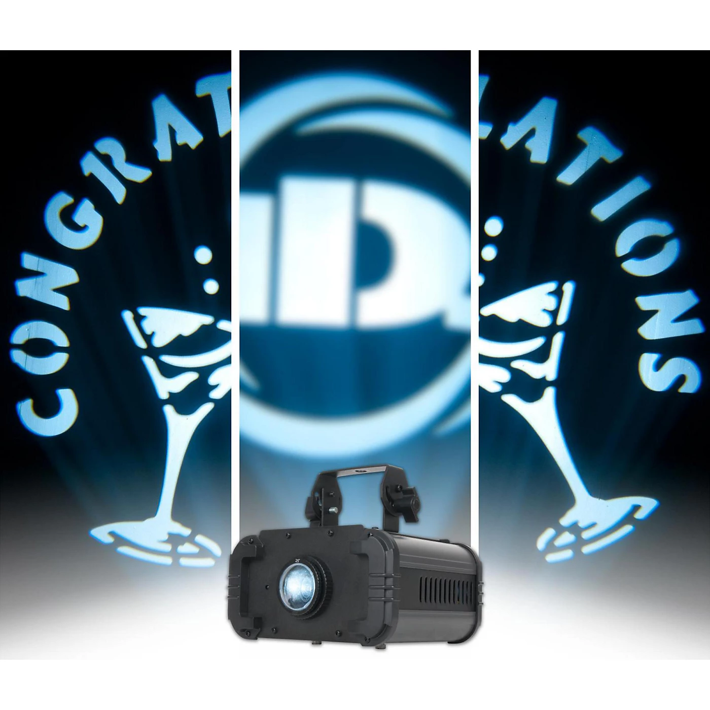 The Ikon IR is a high output single Gobo Projector powered by a bright 60W (7500K) white LED. This fixture used high quality optics for crisp, clear projection. User can adjust the LED brightness and Gobo rotation on the rear of fixture or by the included wireless UC IR remote control. The Ikon IR includes 4 metal Gobos. Users may also insert custom Gobos in the fixture. This projector also comes with three interchangeable lenses that produce different beam angles (25, 32 or 43 degrees) making it versatile for a wide variety of applications.